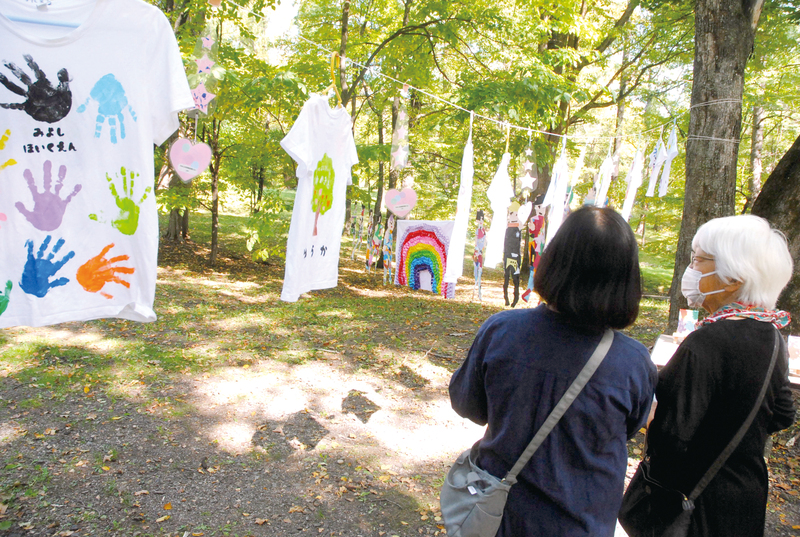 自然豊かな公園の中に作品を展示する「きたみ森んなか美術展」が6日、北見市内の野付牛公園の一角で開か…