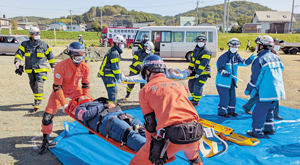 土砂災害を想定した北見地域救急災害総合訓練が4日、北見市内の川東河川敷多目的広場で行われた。 北…