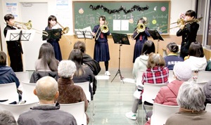 不登校の生徒らの学びの場となっている北見夜間中学で24日、ミニコンサートが開かれ、北見北斗高校吹奏…