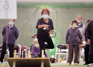 美幌町シニアクラブ連合会の輪投げ大会が23日、サニーセンターで開かれた。23チーム92人が出場。3…