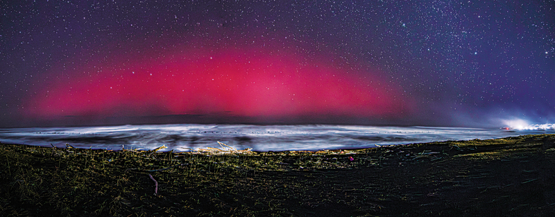 12日夜、夜空が赤く光る「低緯度オーロラ」が北海道の広い範囲で観測された。読者から北見市常呂で撮影…