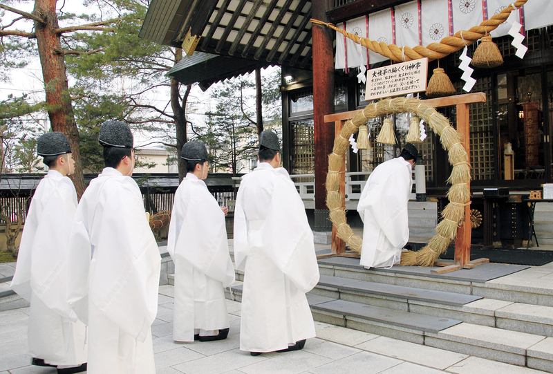 3回くぐってお参りすると、1年の災いが払われるとされる「茅の輪」が歳末の北見神社にお目見えした。訪…