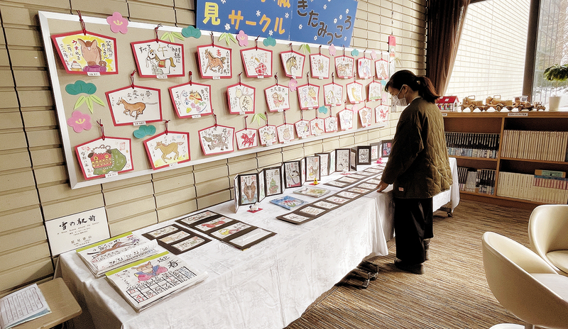 北見の絵手紙サークル「きたみっころ」の年賀状展が、北網圏北見文化センターのラウンジで開かれている。…
