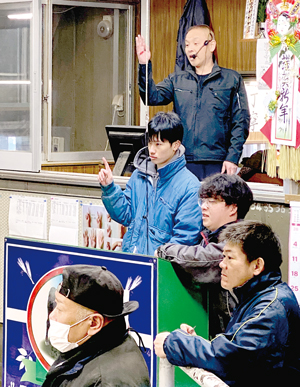初競りは昔ながらのスタイルで―。道内の畜産農家が育てた黒毛和牛などを扱っている、北見地方畜産商業協…