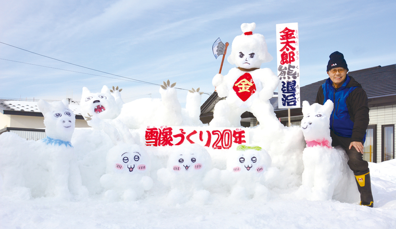 子ども達を喜ばせたいと雪像づくりに励む北見市東三輪2の西尾義明さん(84)から、今年も雪像完成の便…