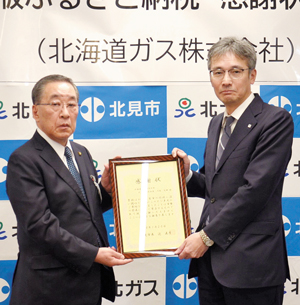北海道ガス㈱からの「企業版ふるさと納税」の寄付に対し、北見市は23日、感謝状を贈呈した。寄付金は、…
