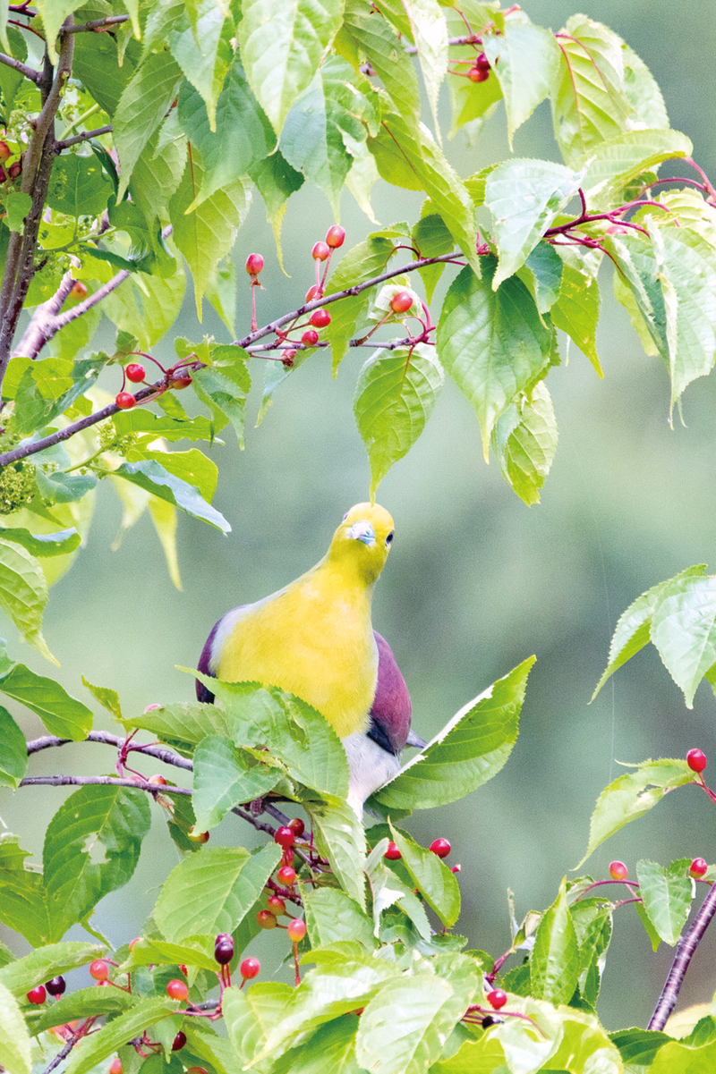 作者のひとこと…葉桜の中で軽快に実をついばむアオバトが桜の花に負けず華やかでした。 前川さん講評…ア…
