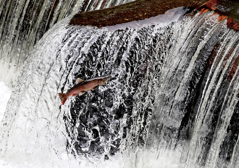 作者のひとこと…サクラマスの色がきれいな虹色になり元気で何回も何回も飛んでやっと越えて行く。 前川さ…