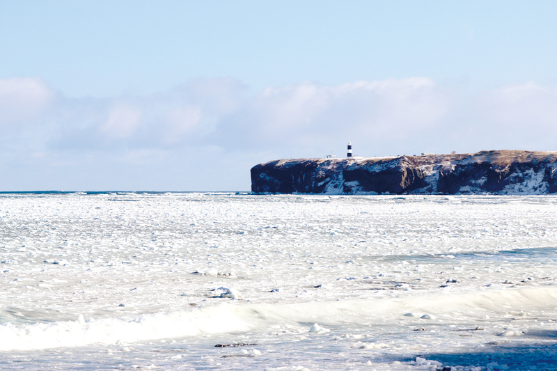 北見市常呂の前浜に28日、流氷が到達した。前日、沖合に見えていた白い筋状の氷が一夜にして岸まで押し…