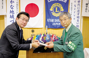 北見白樺ライオンズクラブ(田中努会長)は4日、北見ハンディキャップスキー協会(片山仁会長)と北見地…