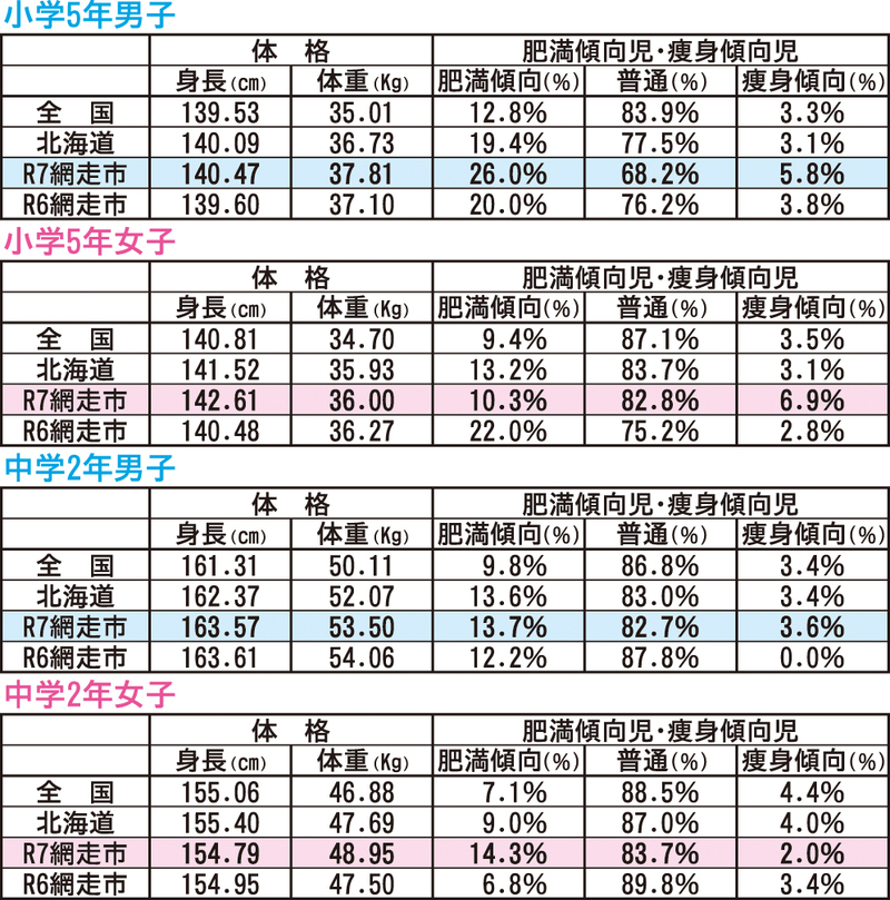 網走市教委は、市内小学校5年生と中学2年生の男女を対象に実施した「全国体力・運動能力、運動習慣等調…