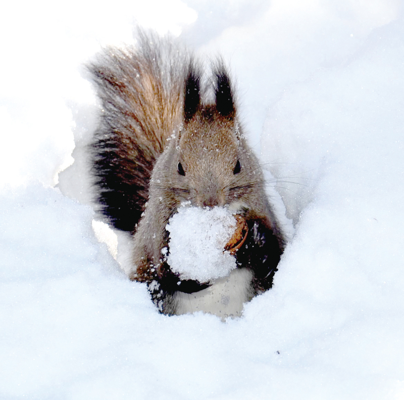 北見市の北網圏北見文化センター裏の林で、雪の上を元気に走り回るエゾリスに出会った。シマリスと違い冬…