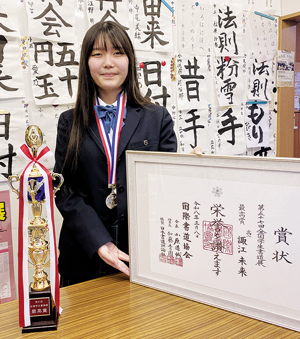 第57回全国書道コンクール(主催・国際書道協会)の「高校の部」で網走市の諏江未来さん(網走桂陽高2…