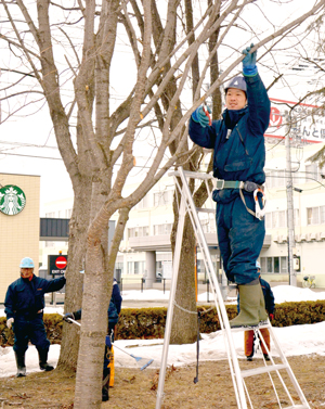 オホーツク造園組合(北海道造園組合連合会オホーツク支部)は11日、北見市内の三輪公園でエゾヤマザク…