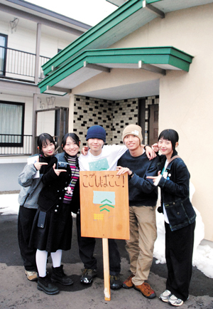 「アートで北見を盛り上げたい」と、北見出身で札幌、東京の美大に通う5人が、北見市三楽町の一軒家をま…