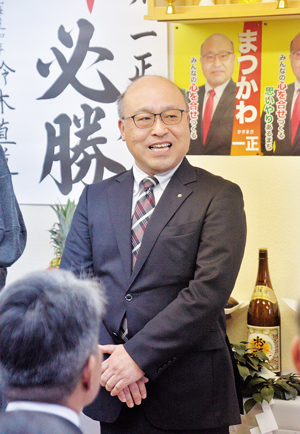 任期満了に伴う大空町長選挙(4月7日告示)に再選を目指し立候補を表明している現職の松川一正氏(56…