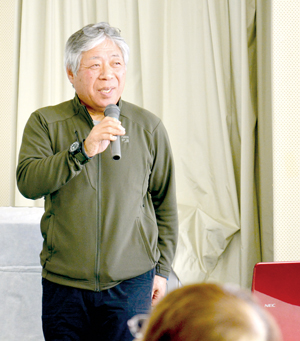 北見市端野町公民館の語り場講座「3・11東日本大震災~復興へ~」が14日に開かれた。自作のキャンピ…