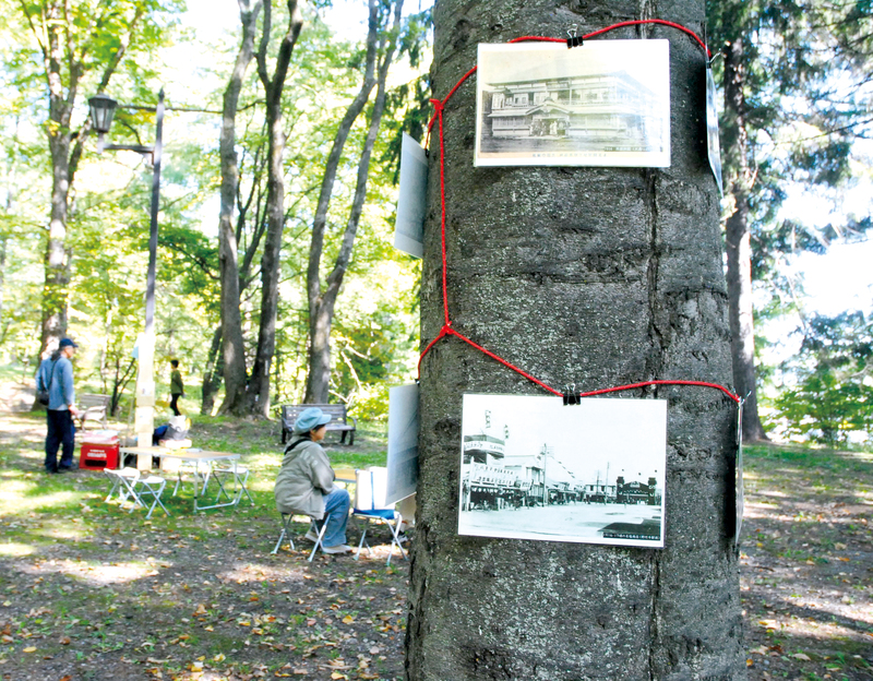 北見、美幌といった道東や道内をはじめ、海外などで活動するアーティストらも参加。木や公園を傷つけなければ、展示方法や場所は自由で、それぞれ木や枝に吊るしたり、切り株に置くなどして作品を展示した。市内の保育園の子ども達による手形などを使ったかわいらしい作品や、1910年代をはじめとする北見の古い写真約150点も並んだ。