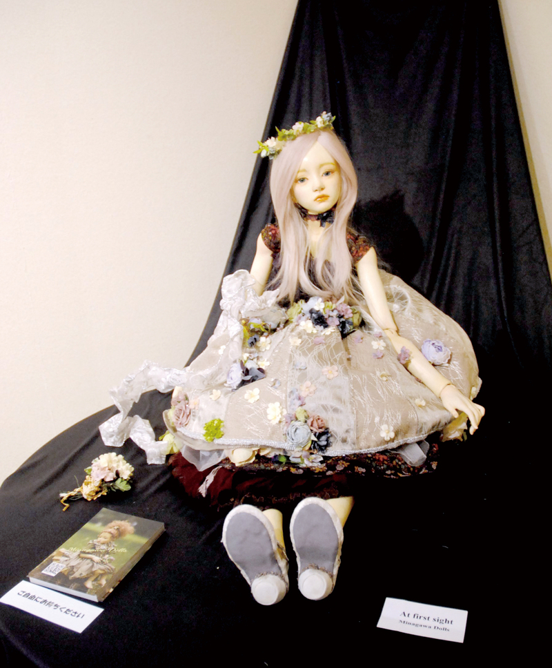 生徒の作品展示は2年ぶり。会場には、それぞれの世界観に合わせて小物や展示方法にこだわった、個性豊かな作品がずらり。さまざまな表情を見せる球体関節人形だけでなく、固定ポーズ人形やぬいぐるみ、ケースの中を覗くと〝何かがいる〟おばけやしきのようなアイデアいっぱいの作品が並ぶ。