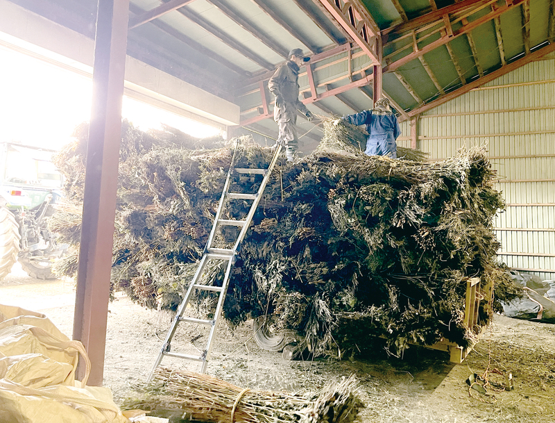 JAきたみらい管内では香料用の青シソを市端野町北登、二区、川向の農家7戸でつくる端野町シソ耕作組合が11㌶で作付け。5月上旬ごろに種をまき、9月上旬から中旬にかけて収穫・はさ掛け(乾燥)を行い、10月下旬から蒸留作業に入る。香料用青シソは手間のかかる作業が多く、生産者は減少しているが高収益作物としての期待も高まっている。