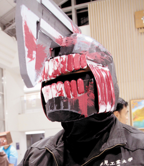 ④頭にノギスが刺さった悪魔。生体メカトロニクス研究室で日頃ノギスを使う大学院2年生。「学生最後のハロウィーンなので思い切り楽しみたくて」