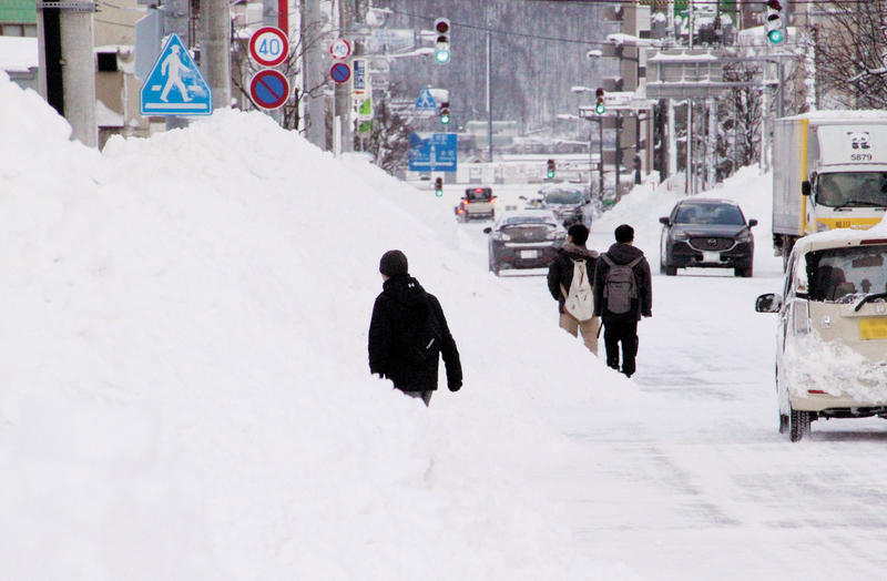 北見市は15日、すべて小中学校を臨時休校とし、ごみの収集も中止。市内では家から車を出せずに出勤を断念する人や徒歩で勤務先に向かう人の姿もあった。休業する会社や事業所もあり、市民生活が大きな影響を受けた。