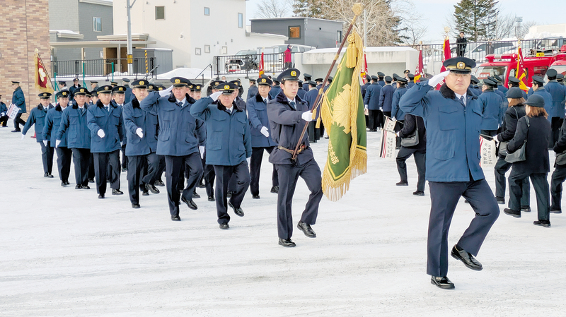 北見地区消防組合消防署と北見消防団の2026年新年観閲式が7日、北見市内の消防本部で行われた。