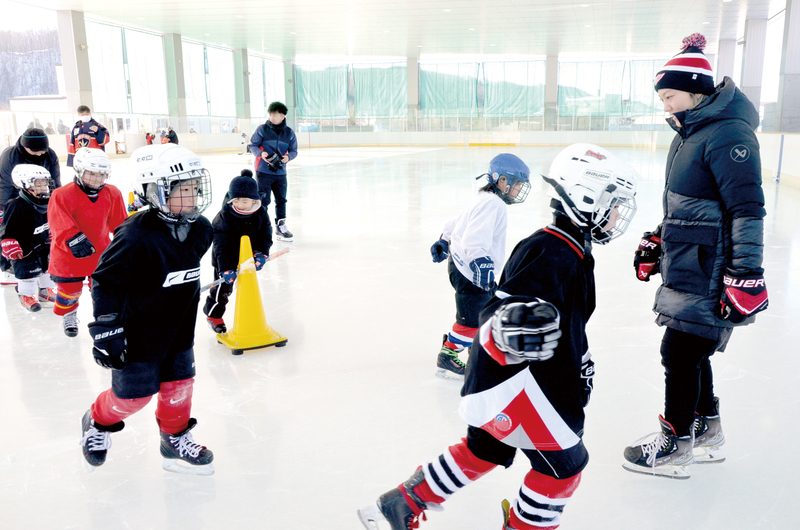 大澤さんはこの日、少年団の北見リトルパイオニア、網走ノーススターズの選手も指導し、アイスホッケーの魅力を伝えた。 (柏)