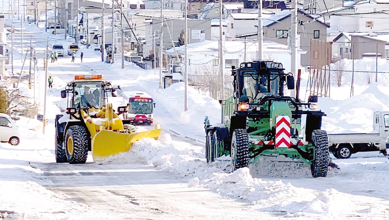 先日、市内潮見地区を歩いていた記者は偶然、市道の排雪作業に出会った。かなり大掛かりな作業で、大型ロータリー車、ショベルドーザ、6輪のグレーダー車(最新タイプ)、そしてたくさんのトラックが手際よく行き交っていた。