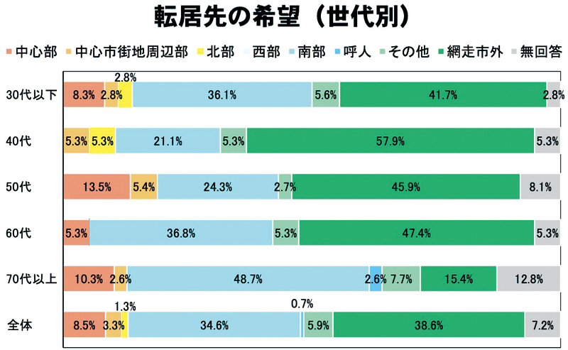 調査では、転居希望先「市外」の次に多かったのが「南部」で、全体回答の34・6%を占めた。