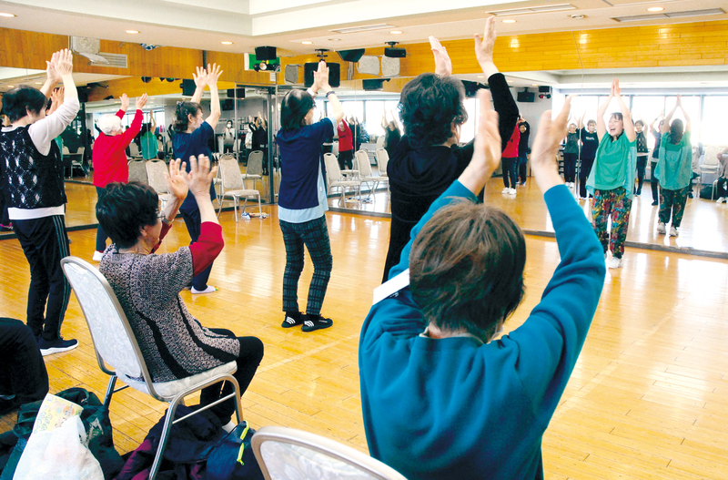さっそく竹岡さんのお手本とアップテンポな音楽のリズムに合わせてダンスに挑戦。不安な人は椅子に座ったままで手足を動かした。
